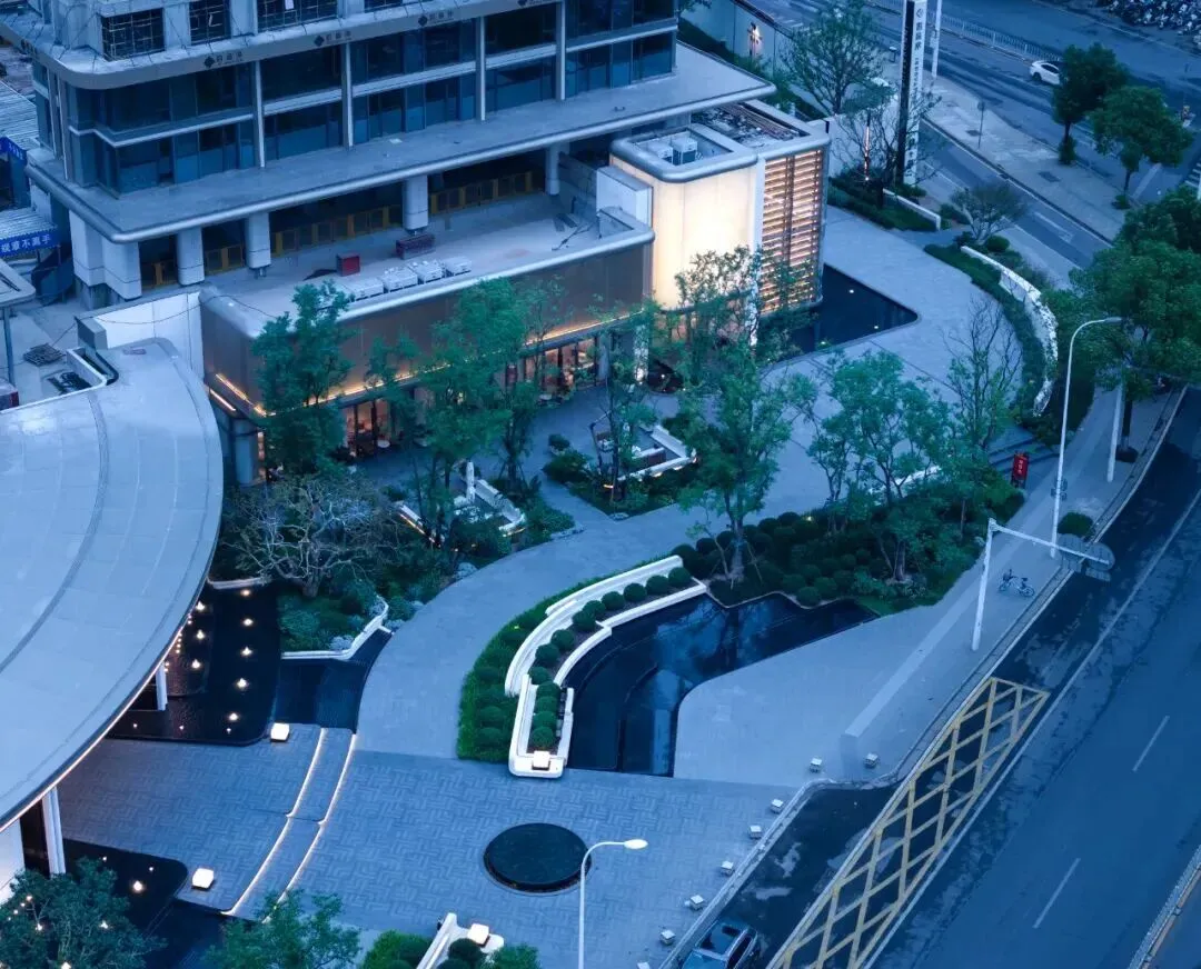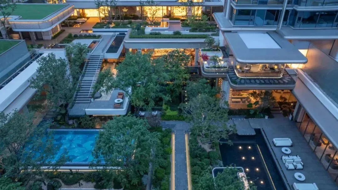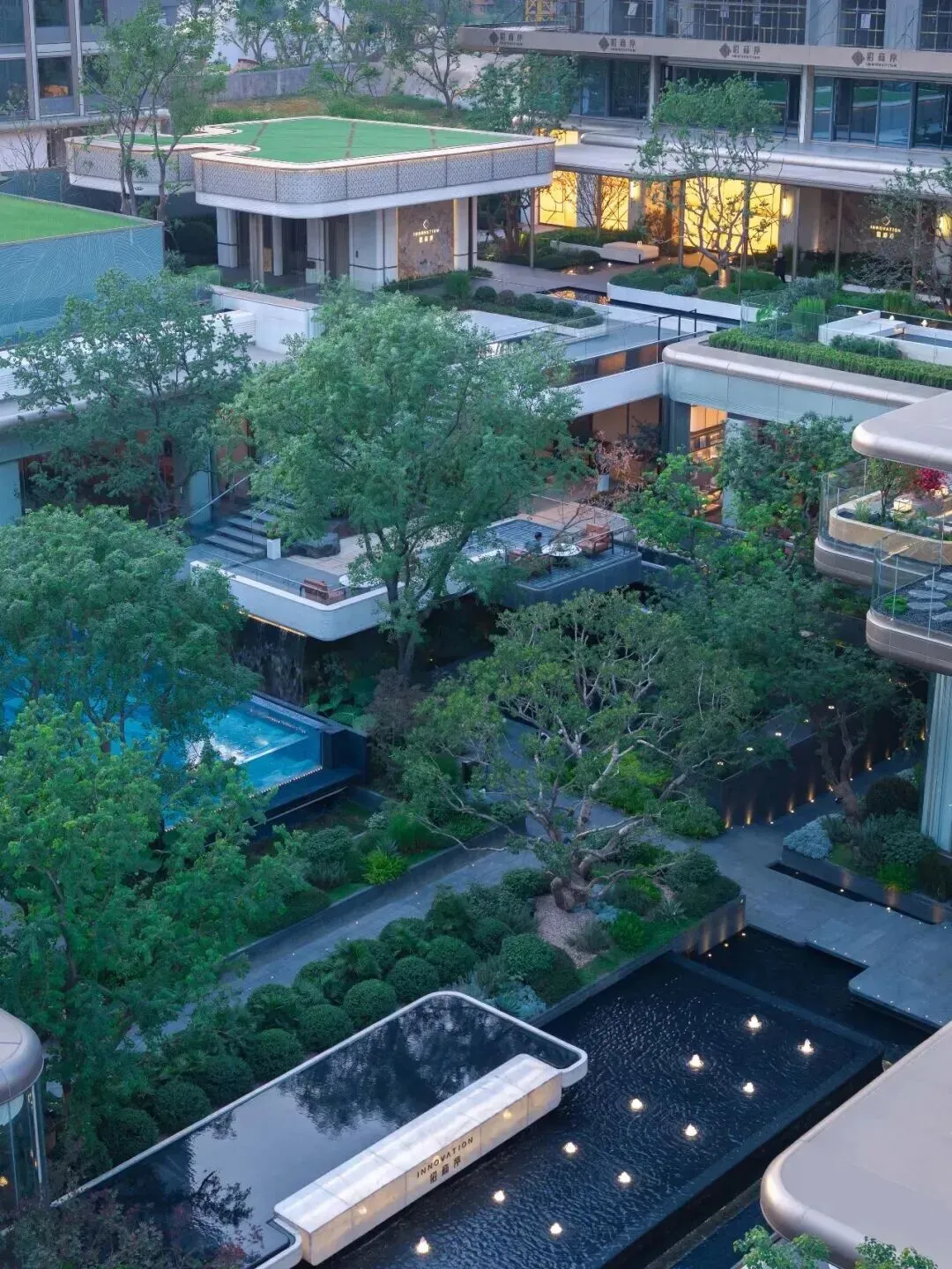 从园林的营造手法来看,也会跟市面上组团式的有点区别,地面完整性被切割后,只能布置长条为主的线性园林,走精致格调路线。