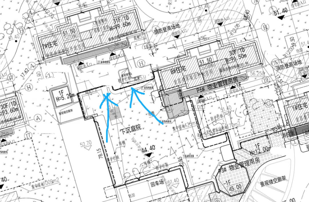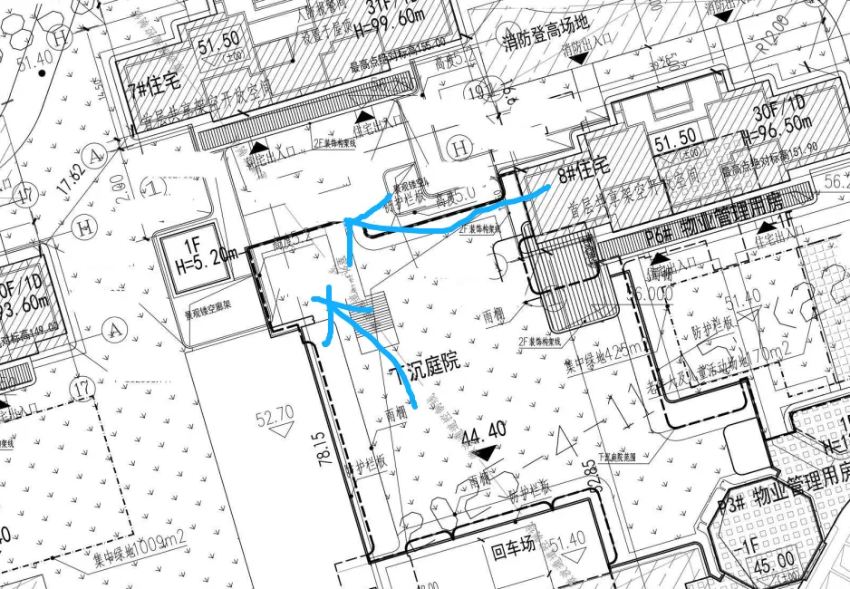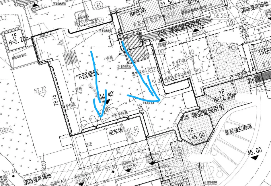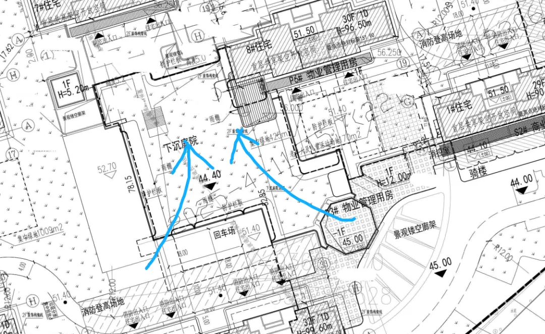 地库下沉区的排水也比较好处理,直接平进市政,不需要提排设备,设备不仅低效、耗能,而且易坏不可久持。