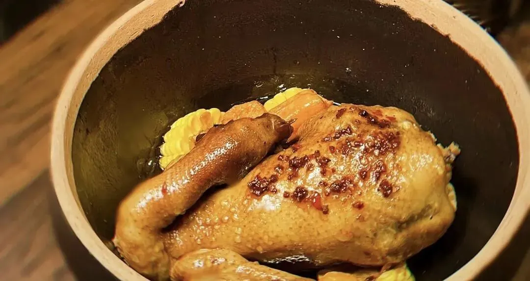 殿堂级招牌、桌桌必点的神仙美味! 选用散养土鸡,整只砂锅慢煨,焖得软烂脱骨、油光锃亮。最绝的是鸡肚里还塞满了糯米,吸饱了浓郁鸡汁,油润软糯、鲜到跺脚。鸡肉一抿就化,搭配秘制辣椒蘸水,香辣入味、汁水狂飙,一口下去直接香迷糊,干饭人直接封神!