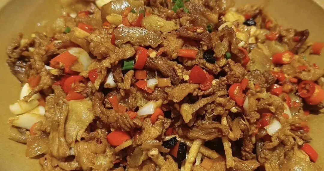 老长沙专属的味觉炸弹、米饭杀手! 酥脆馓子遇上肥瘦相间的肉片,大火猛炒,锅气十足、香飘十里。馓子吸满肉汁,酥脆中带点软糯;肉片肥而不腻、香辣过瘾。脆、嫩、鲜、辣四重口感在嘴里炸开,三碗米饭打底都不够,专治各种没胃口!
