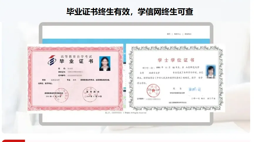 毕业时由相应专业主考院校和主考委联合颁发毕业证书、学士学位证书。国家正规学历,国际认可,享受普通高等院校毕业生同等待遇。毕业证书经由电子注册,中国高等教育学生信息网(http://www.chsi.com.cn)官网查询。