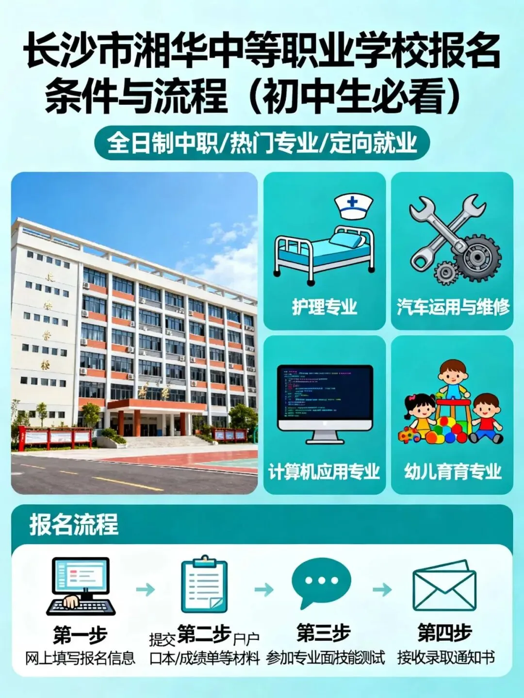符合报名条件的初中生,按照流程完成每一步操作,就能顺利踏入湘华中等职业学校的校门,在专业技能的学习中找到适合自己的职业方向。