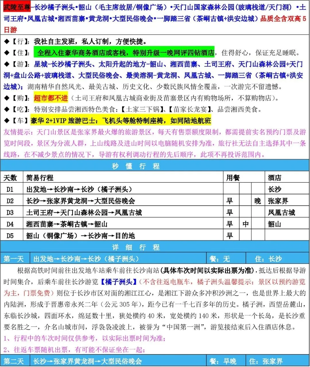 >5.1阜阳出发|武陵至尊|长沙,韶山,张家界天门山,黄龙洞,凤凰古城火车+高铁5日游2980元!