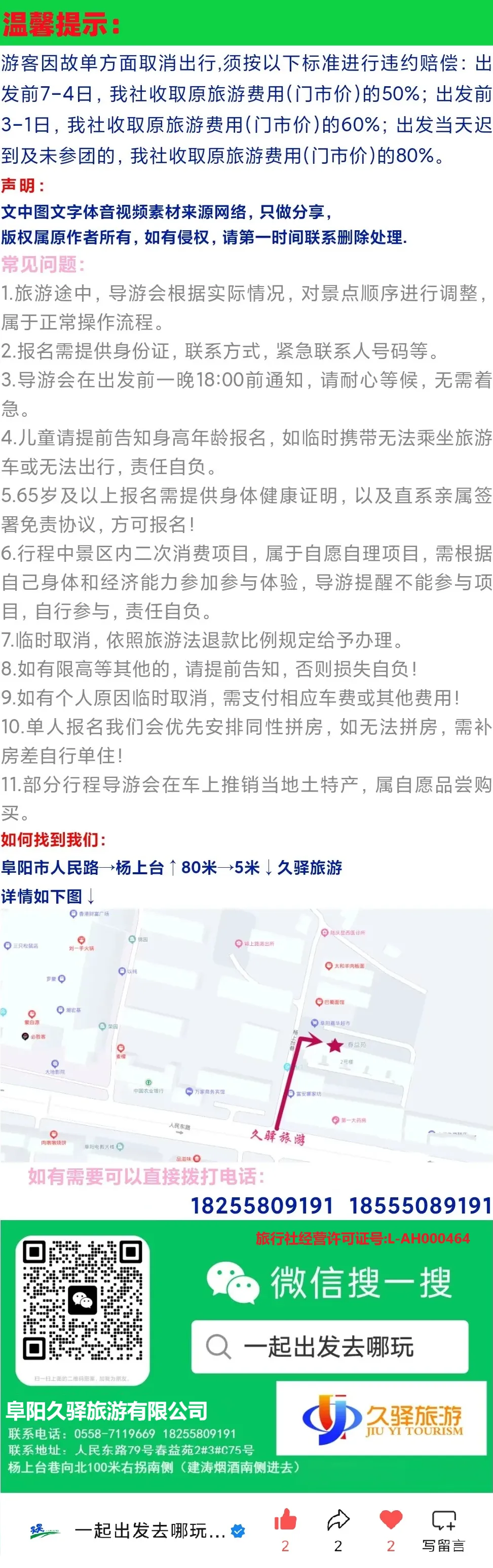 -----阜阳出发线路推荐-----