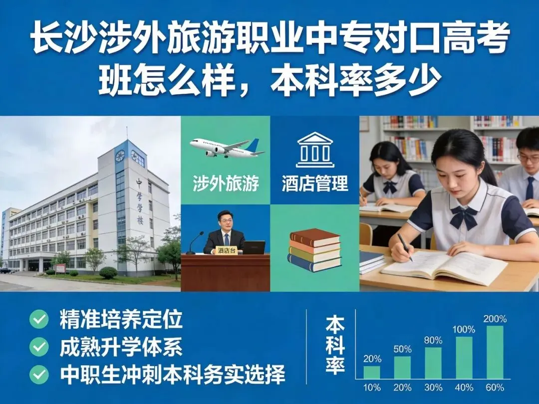 长沙涉外旅游职业中专对口高考班凭借清晰的培养路径、稳定的本科输出率,为中职生搭建了通往本科院校的切实通道,其本科率背后的专业化培养体系,正是中职教育升学赛道精准发力的体现,适合有明确专业兴趣与升学目标的学生选择。