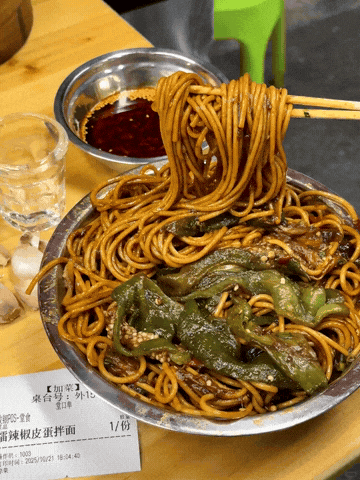 擂辣椒皮蛋拌面