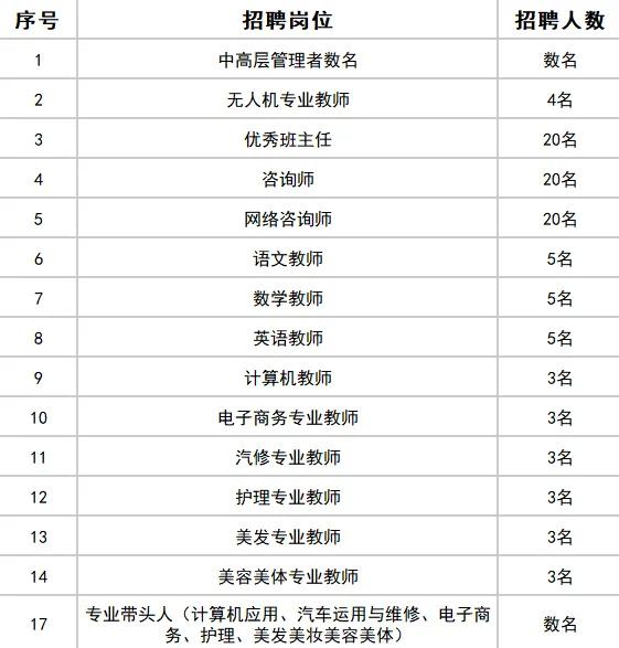 为进一步充实师资力量,优化教师队伍结构,推动学校教育教学事业高质量发展,适配学校“十五五”发展规划需求,助力新质生产力发展,现面向社会公开招聘优秀教师及行政教辅人员,诚邀怀揣教育梦想、身怀专业绝技、热爱职业教育事业的英才加入,与我校携手,深耕匠心教育,共赴美好未来!