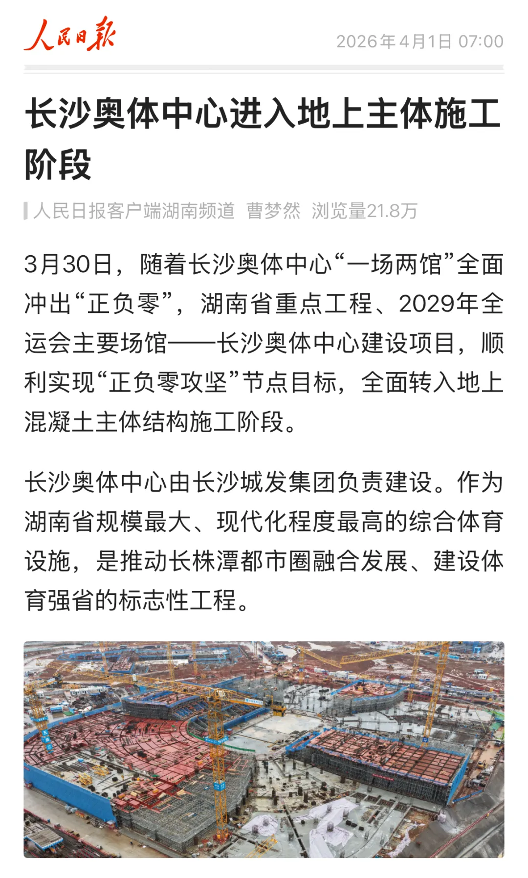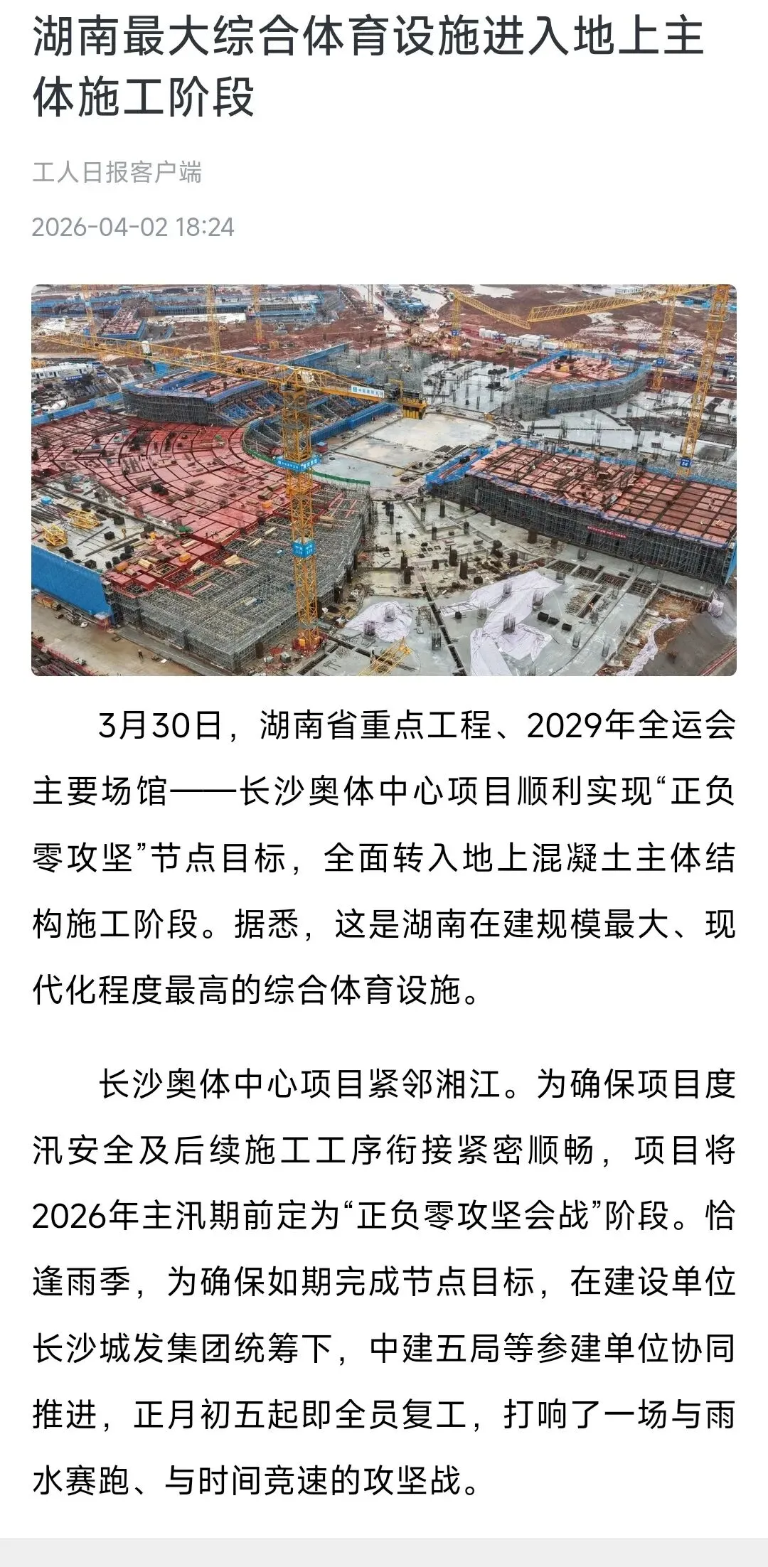 协同、快速、精益!长沙奥体中心全面转入地上主体施工