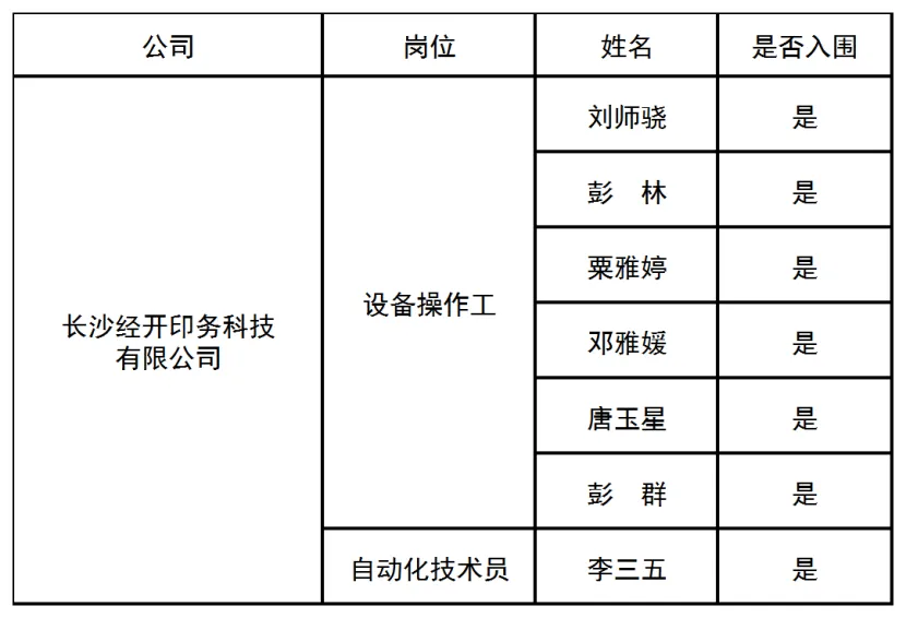 经网上发布简章、报名及资格初审、笔试、资格复审及面试等程序,现将长沙经开印务科技有限公司2026年3月公开招聘工作人员入围体检人员名单予以公示。