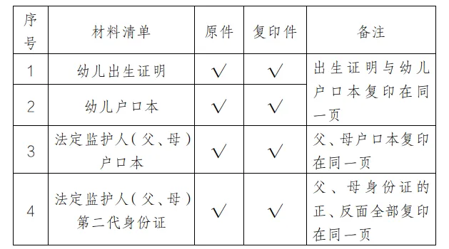 3.报名资料验证。幼儿园根据报名网上报名提供的信息进行初审,对符合招生条件的幼儿进行电话预约,请家长携带相关资料(见下表,请按1-4顺序整理好资料,所有资料都需用原件复印,不要拍照打印)来园进行资料验证,并填写相关信息。