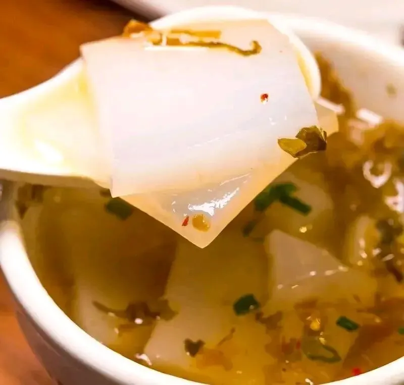 夏天最解暑的街头美食。上周在冬瓜山遇到个摆摊的老嗲嗲,他家的凉粉还是用井水冰镇的。
