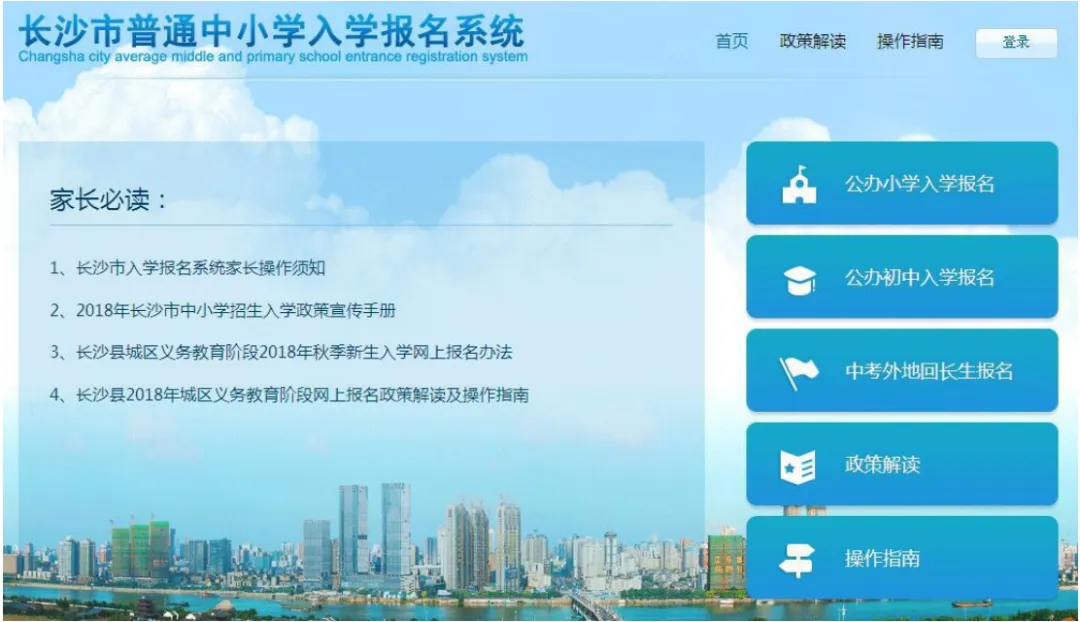 1.家长必读 入学报名前请家长务必阅读“家长必读”与“政策解读”栏目中相关须知,了解当前招生政策,针对家庭实际情况进行为小孩申请学位。