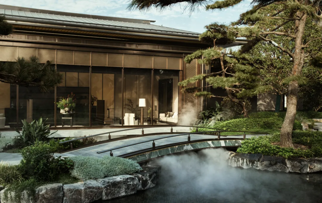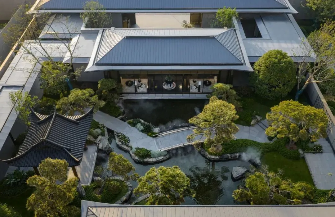 Outside the gate, a Chinese-style waterscape unfurls like a scroll, its waters flowing gently—with restrained brilliance and hidden radiance—welcoming guests with a touch of scholarly elegance.