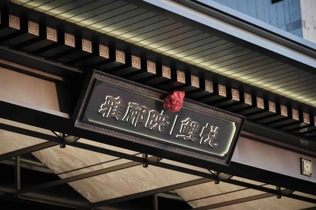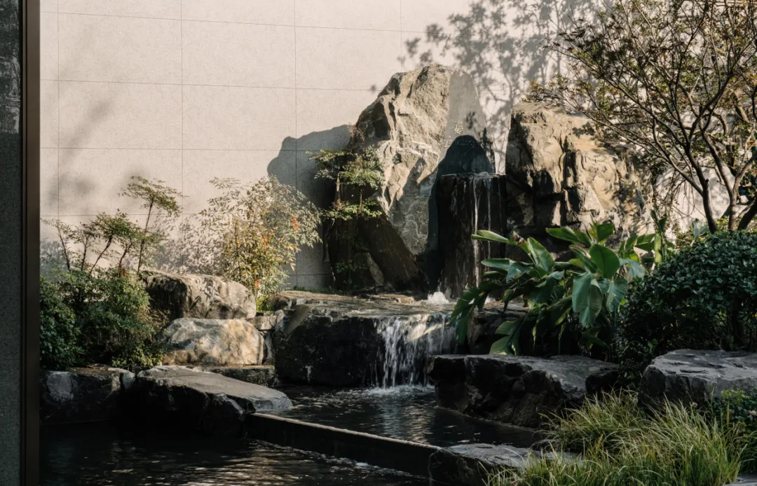 门外,中式书卷画轴水景漫流,光华内敛、清辉藏身,以文韵迎宾。