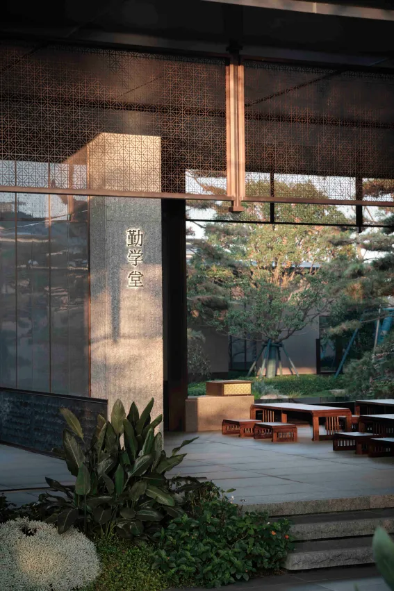 勤学堂深植书院基因,复刻古代治学雅境。清风翻书,似与千年贤者对坐。推窗即揽状元桥,文脉相承,书香致远——最好的教育,是让成长浸润在文化的气韵里。