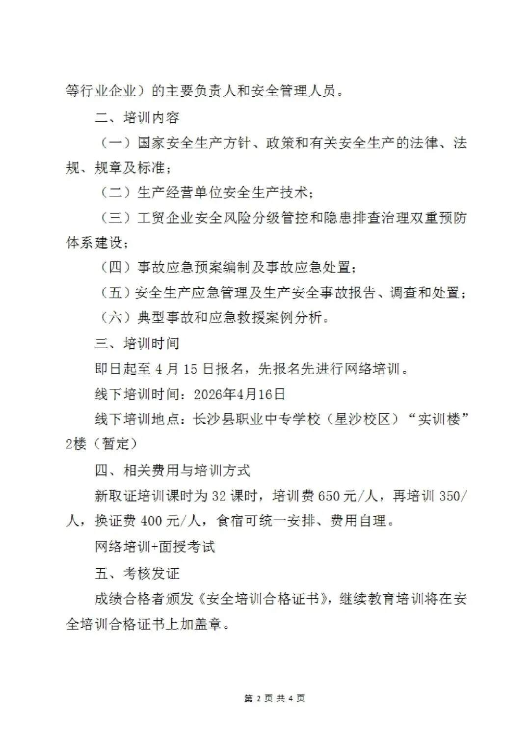 长沙4月份工贸企业主要负责人和安管人员安全培训班报名啦!