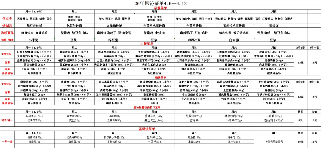 相聚美丽思沁 相遇幸福餐厅|长沙思沁“幸福食堂”第六周菜单