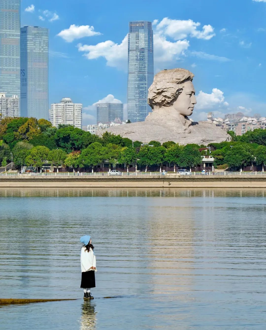 —当年,毛泽东曾在这里沉思、漫步,“指点江山,挥斥方遒”,他的足迹仿佛还留在橘子洲的每一个角落。那份豪情壮志,与这片土地融为一体,让人不禁心生敬意。