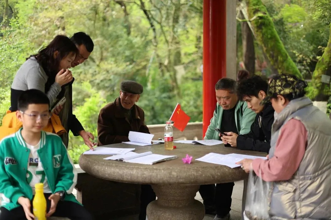 老人家把手写的中国革命历史分享给游人