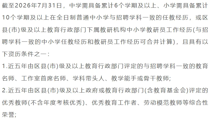 本次公开招聘中小学名优骨干教师岗位21个、招聘计划120名,基本要求详见岗位表(附件1)。岗位任教(工作)经历及其他资质要求如下: