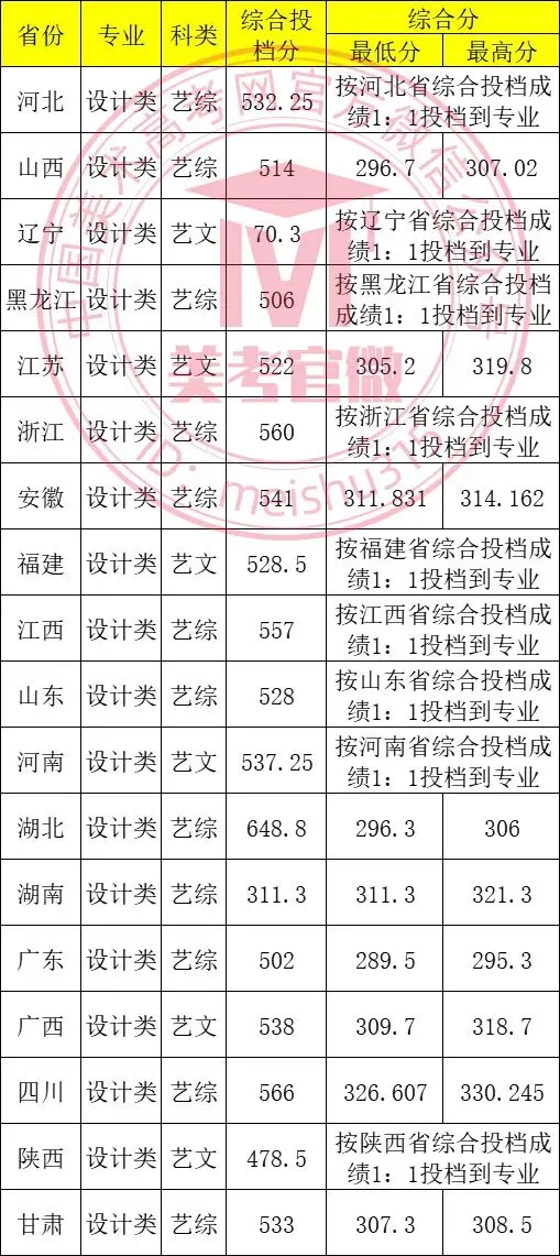 对各项成绩均无特别要求,按照各省规定的平行志愿综合分进行投档,对进档考生按综合成绩从高到低录取。综合成绩=高考文化成绩(含政策性加分)×30%+专业统考成绩×70%,最终结果保留1位小数。