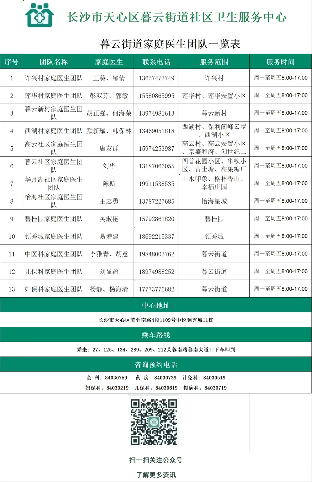 无需提前预约,携带身份证、个人病历、检查报告等资料,直接关注暮云中心微信公众号线上挂号或前往暮云中心一楼现场挂号即可参与。