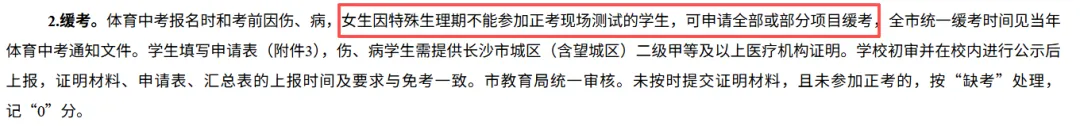 根据体育中考政策,女生因特殊生理期不能参加正考现场测试的学生,可申请全部或部分项目缓考。这是官方认可、合规的方案。适合平时痛经明显、经期乏力、头晕、经量较大的女生。