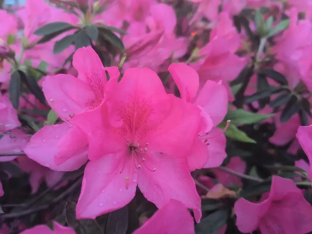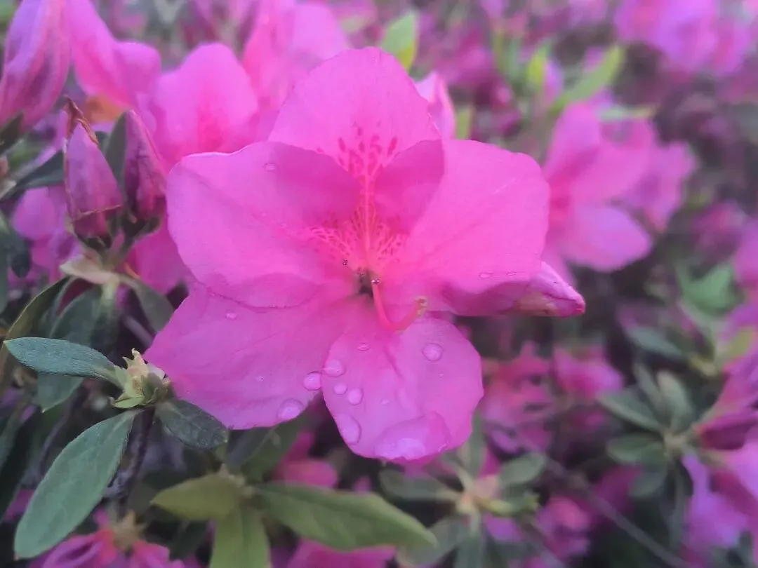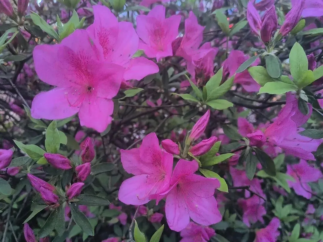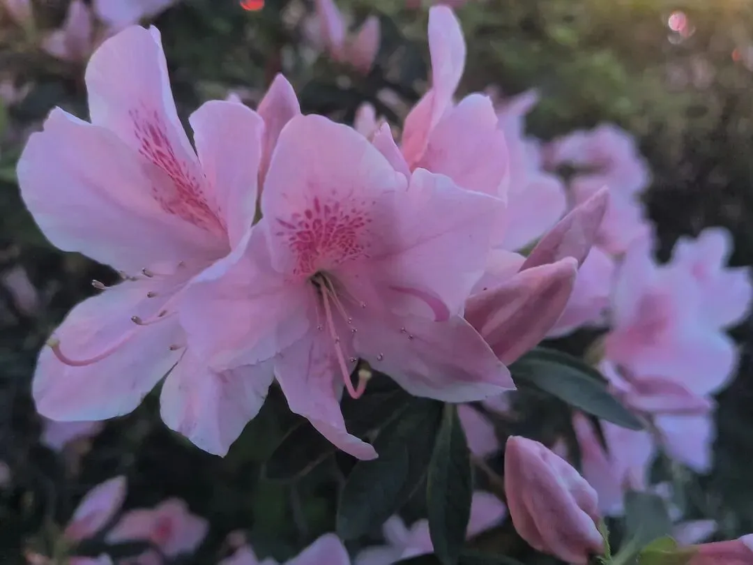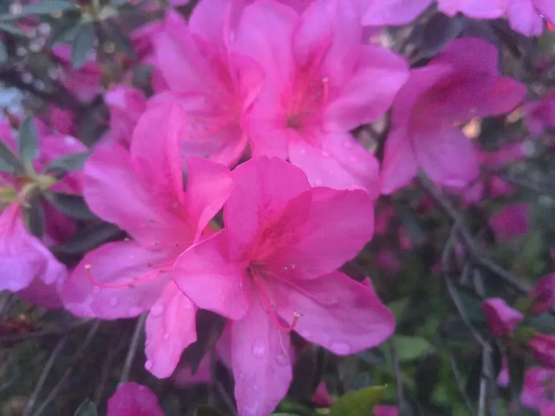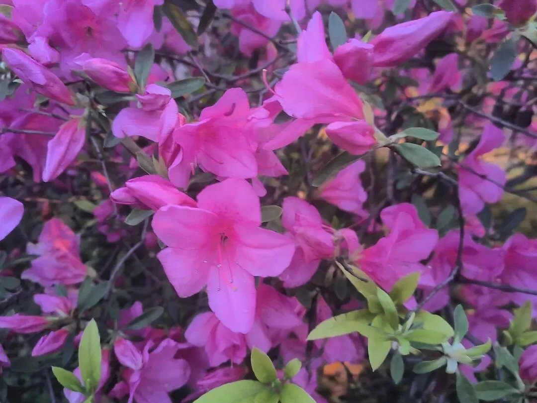 2. 夜景绝绝子:夜晚的杜鹃路自带氛围感,暖黄路灯洒在花瓣上,搭配相机夜景模式,虚化背景后花朵轮廓更清晰,粉红花色在灯光下温柔又高级,还能捕捉到花瓣上的细碎光斑和水珠,比白天更有故事感。