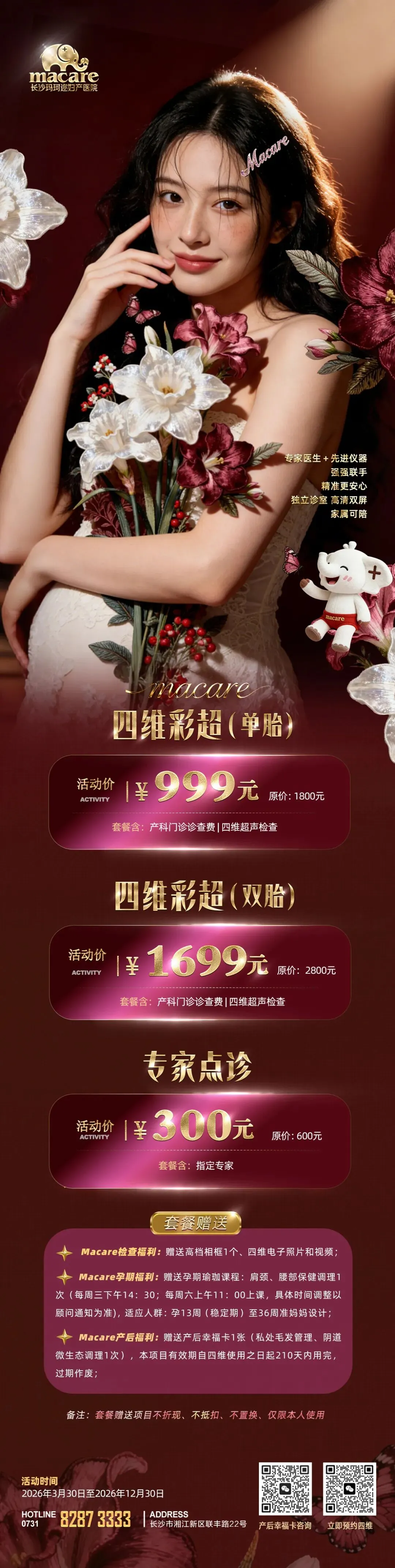 赠送产后幸福卡(私处毛发管理、阴道微生态调理各1次),帮助您从容迎接产后恢复黄金期。