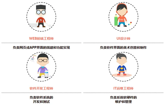 软件企业:可从事设计、开发、测试等岗位;企事业单位:可从事IT运维、技术支持、IT管理等各类岗位;互联网/电商企业:可从事网站策划、开发、维护,以及UI设计、网页设计、美工制作等岗位。