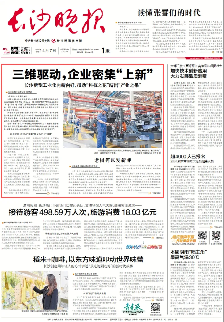 企业“上新”背后,一条逻辑主线清晰可见:以入选创建国家新型工业化示范区名单为契机,长沙正聚焦产业创新,推动数智融合,拓展全球市场,在培育新质生产力的赛道上抢跑“春天里”。