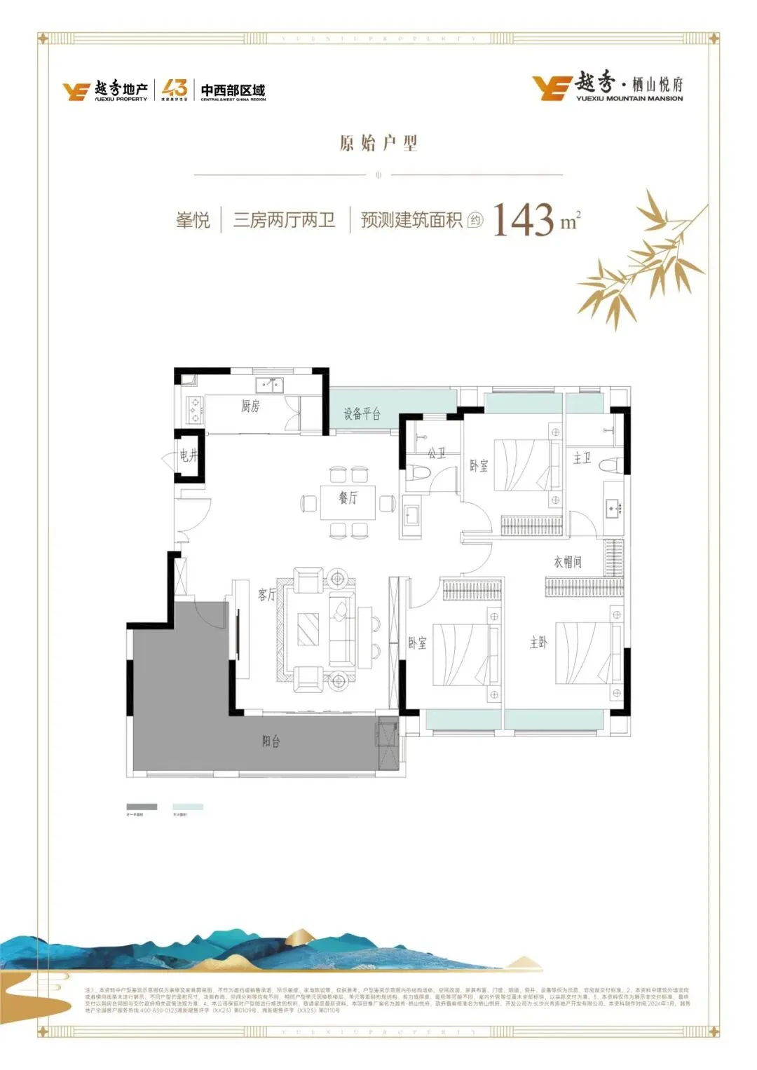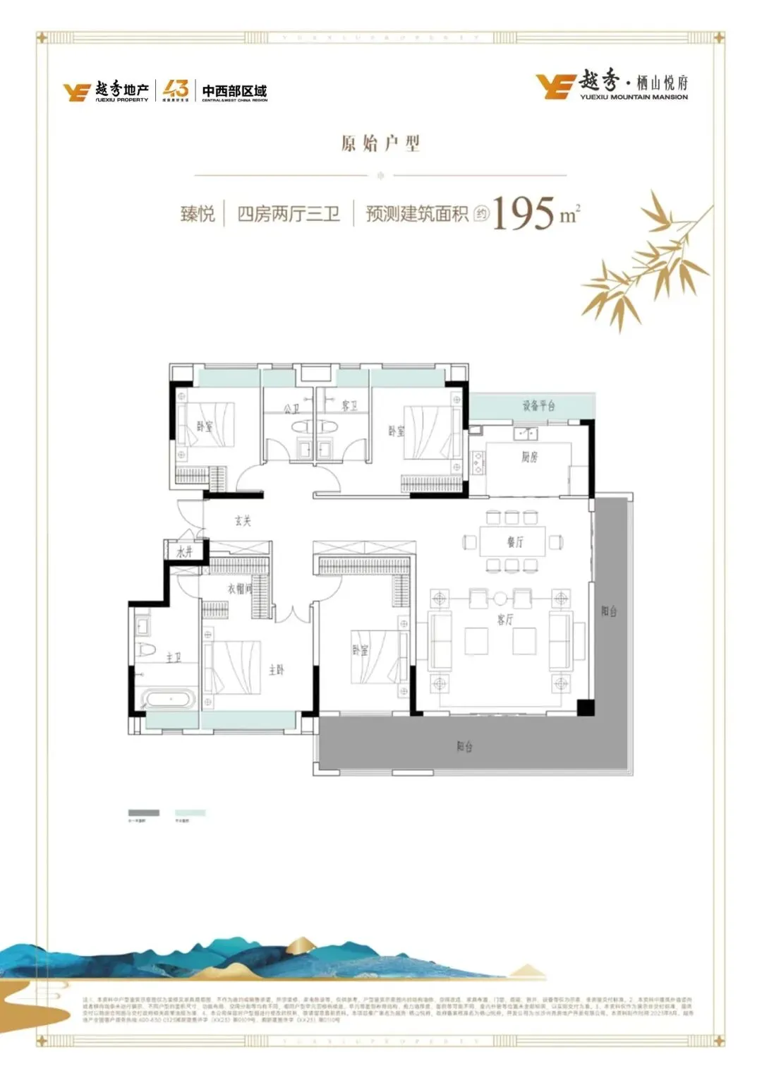 129㎡三房两厅两卫:格局方正,动静分区,主卧套房设计带独立卫浴和衣帽间,四口之家住得宽敞不拥挤,刚改首选;143㎡三房两厅两卫:开间约 5 米的大横厅,外接 8 米 L 型南向阳台,直看谷山山景。入户花园半赠送,客餐厅一体化,空间感拉满,三代同堂也不局促,改善一步到位;195㎡大平层洋房:四房两厅三卫设计,超阔绰空间,双阳台、多飘窗,私密性和舒适度拉满,终极改善的不二之选。