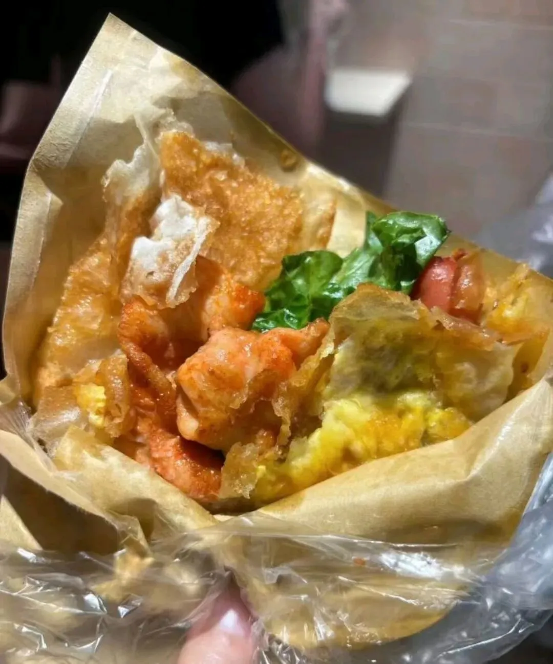 拿到手一定要趁热吃!咬下一口,外皮咔嚓作响,内里软嫩,蛋液绵密,配料塞得满满当当,一个下肚饱腹感超强,十几块钱就能收获满满的幸福感。