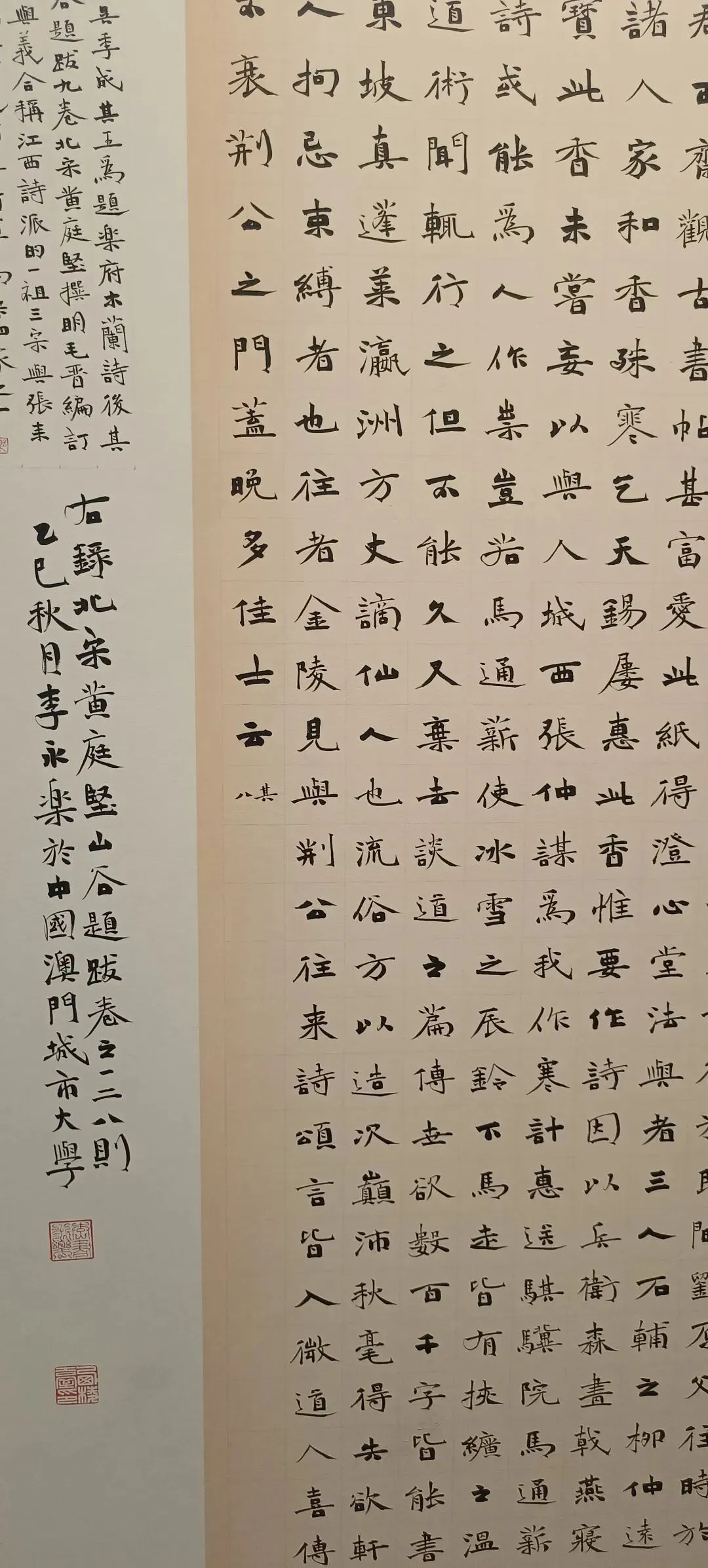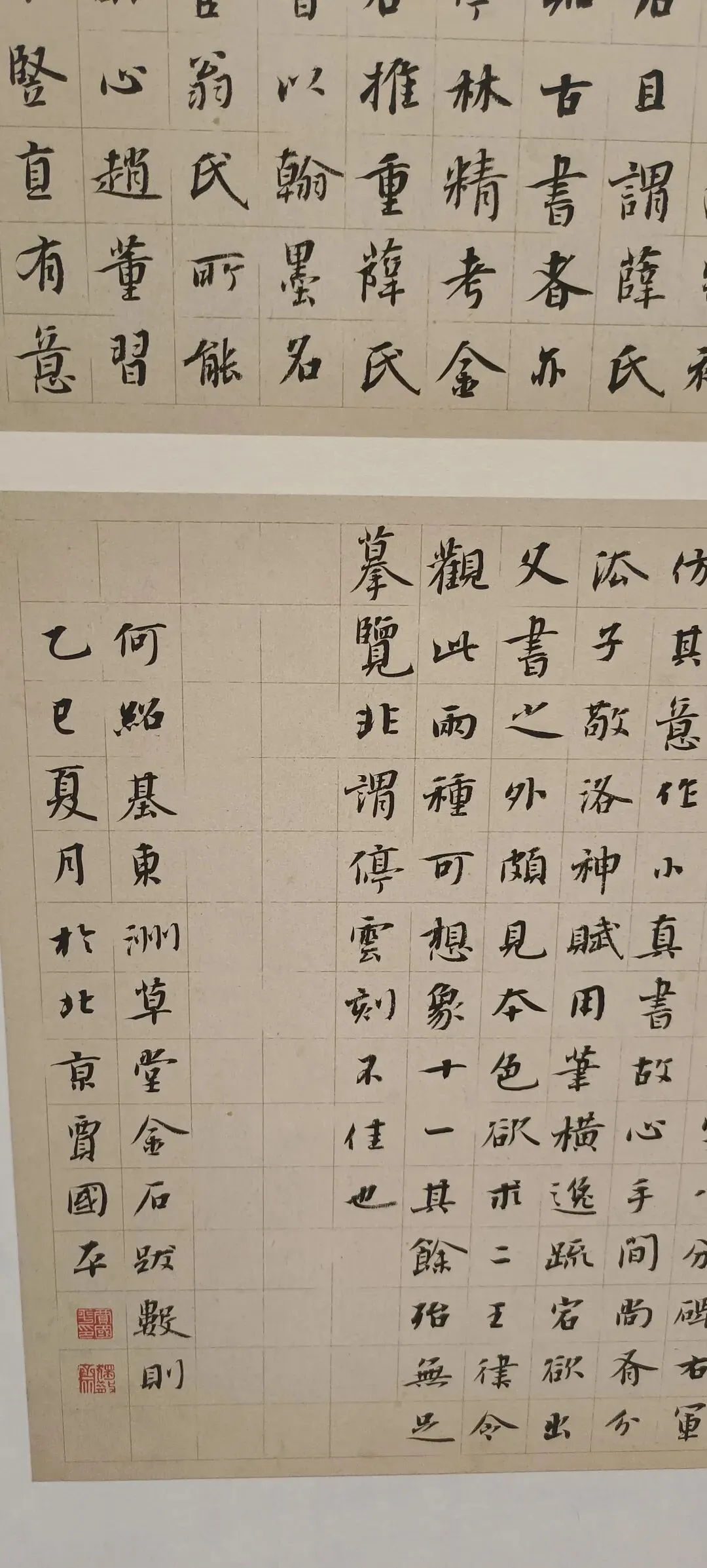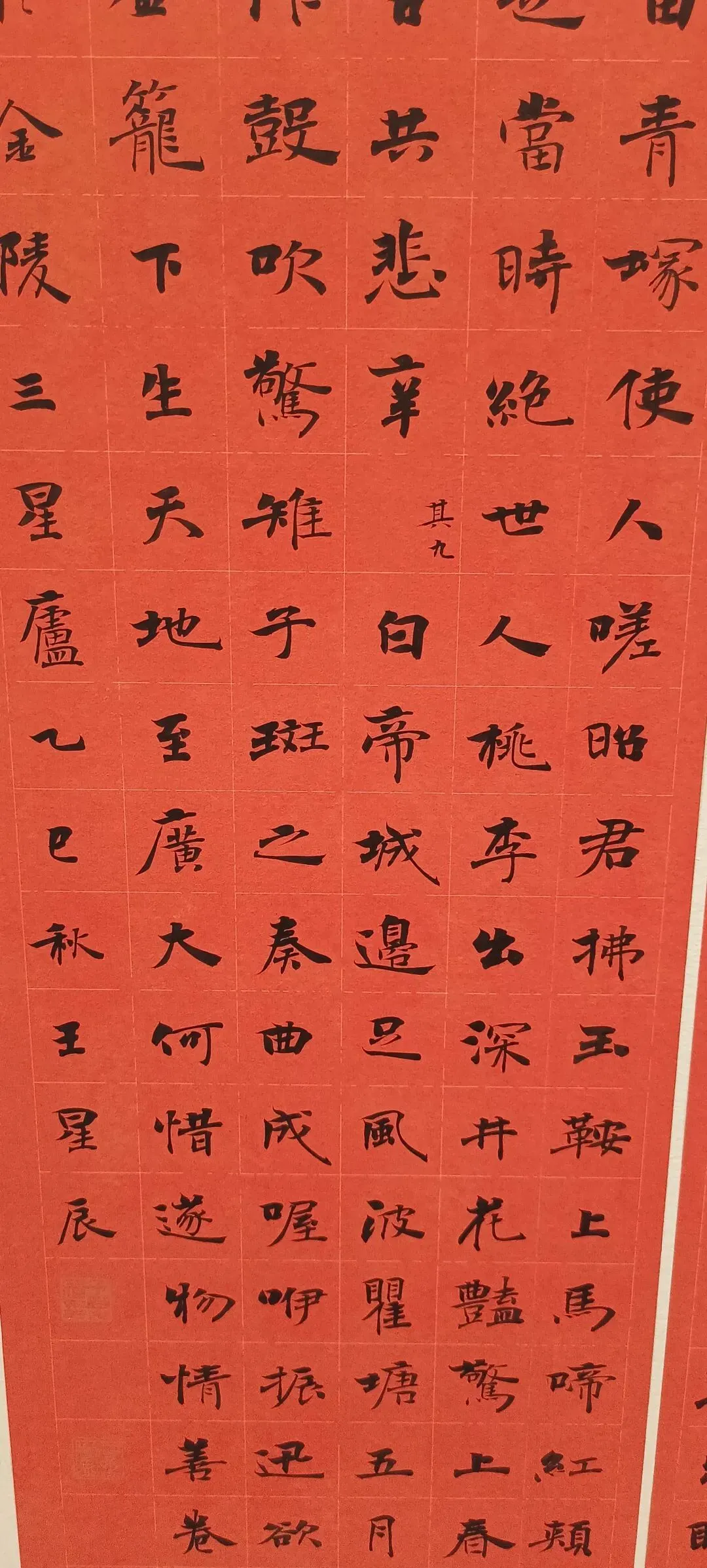 感想:中楷居多,唐楷融合魏碑居多。大字作品少,不易写。打格较多,比较麻烦,用笔精到,需专精一家,融合其他。注意书写性,楷书行化,粗细对比,不宜太粗。同时又参观学习湖南省书协优秀会员作品展,此行开眼界,受3益,触动自己的书法学习,深感用功不足。