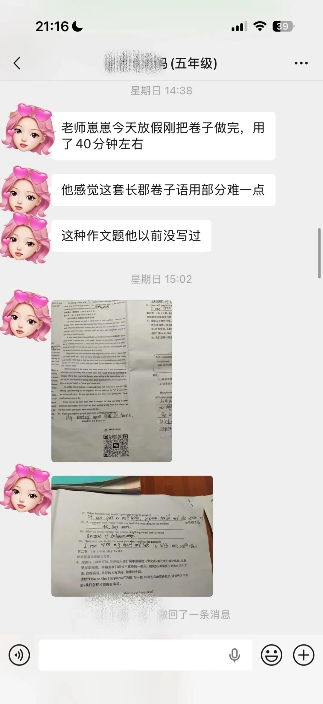 过了几天,家长给我反馈了——