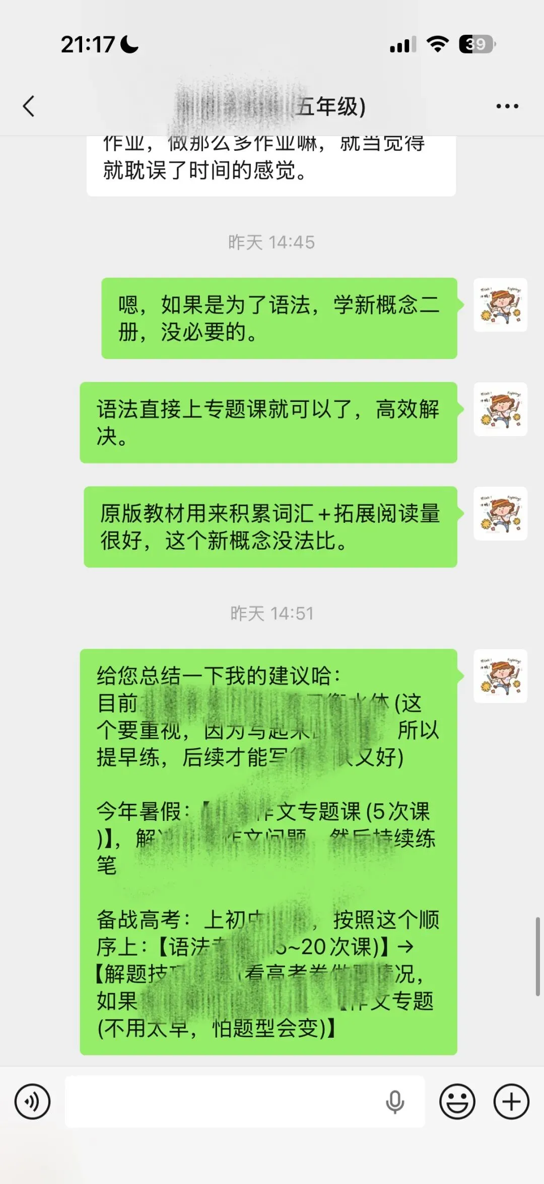 家长挺着急的,想赶紧报我的课。但我反而让她先别急。