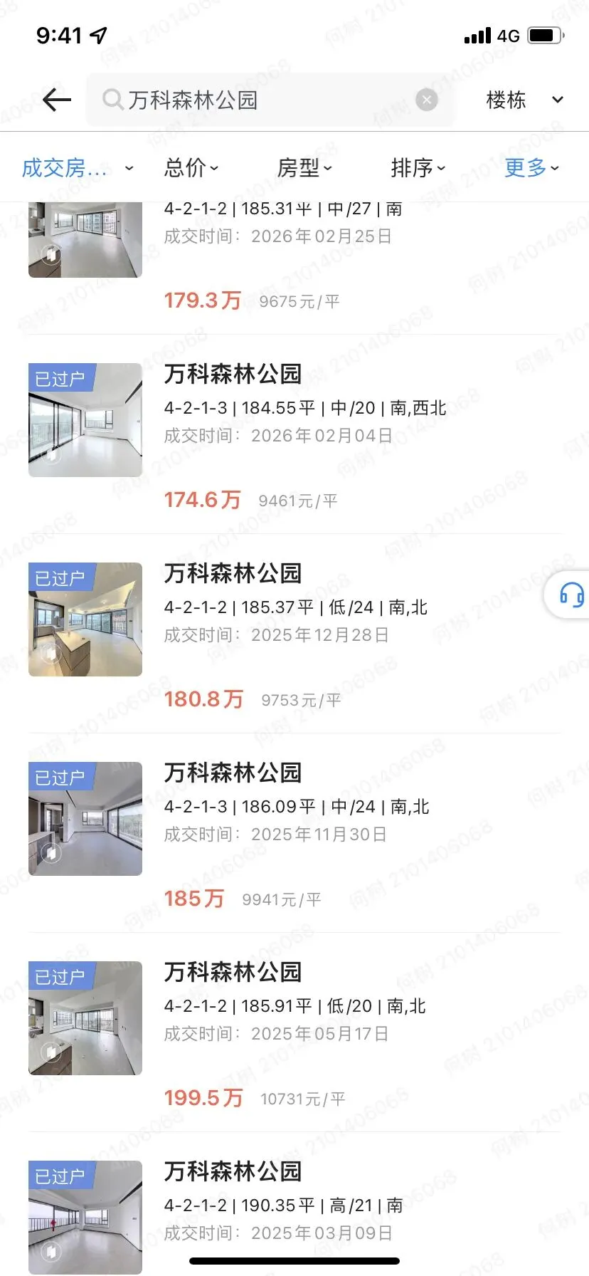 这个楼盘卖的最好的就是143平四房,而180平以上的户型,24年交房至今,整个小区就卖掉三套,当然,这个数据也不绝对准确,也有其它平台成交,但是也寥寥无几。可以说是很难卖掉。上图236平虽然是低楼层,但是买入价也到了1.3万左右,加上两次交易产生的契税,维修金,中介费,最少亏了140万!片区内的的万科森林公园情况也差不多,同样的刚改小区,同样的销冠楼盘。在售户型115/135/143㎡。改善户型:183/186/199/218/248㎡精装交付项目2021年11月份首开靠近二环线的小户型,约 1.3万/㎡,2022-2023年维持 1.3-1.6万/㎡,改善大面积冲高至 1.8-2万/㎡,后期大平层回落至 1.6-1.9万/㎡。