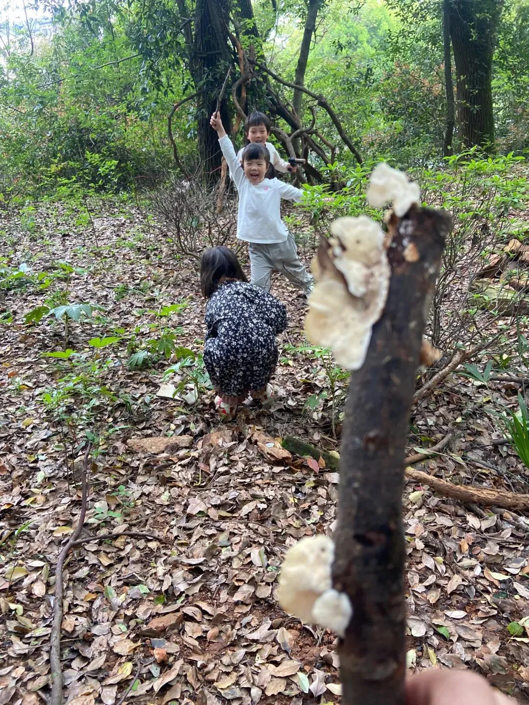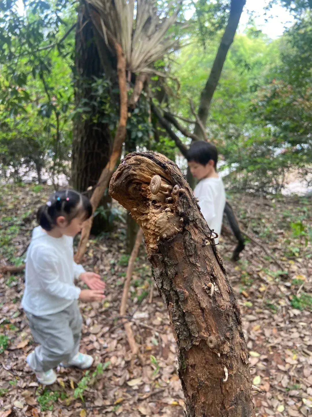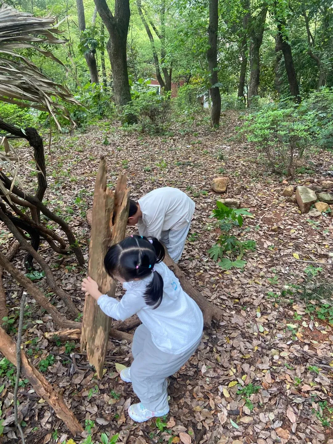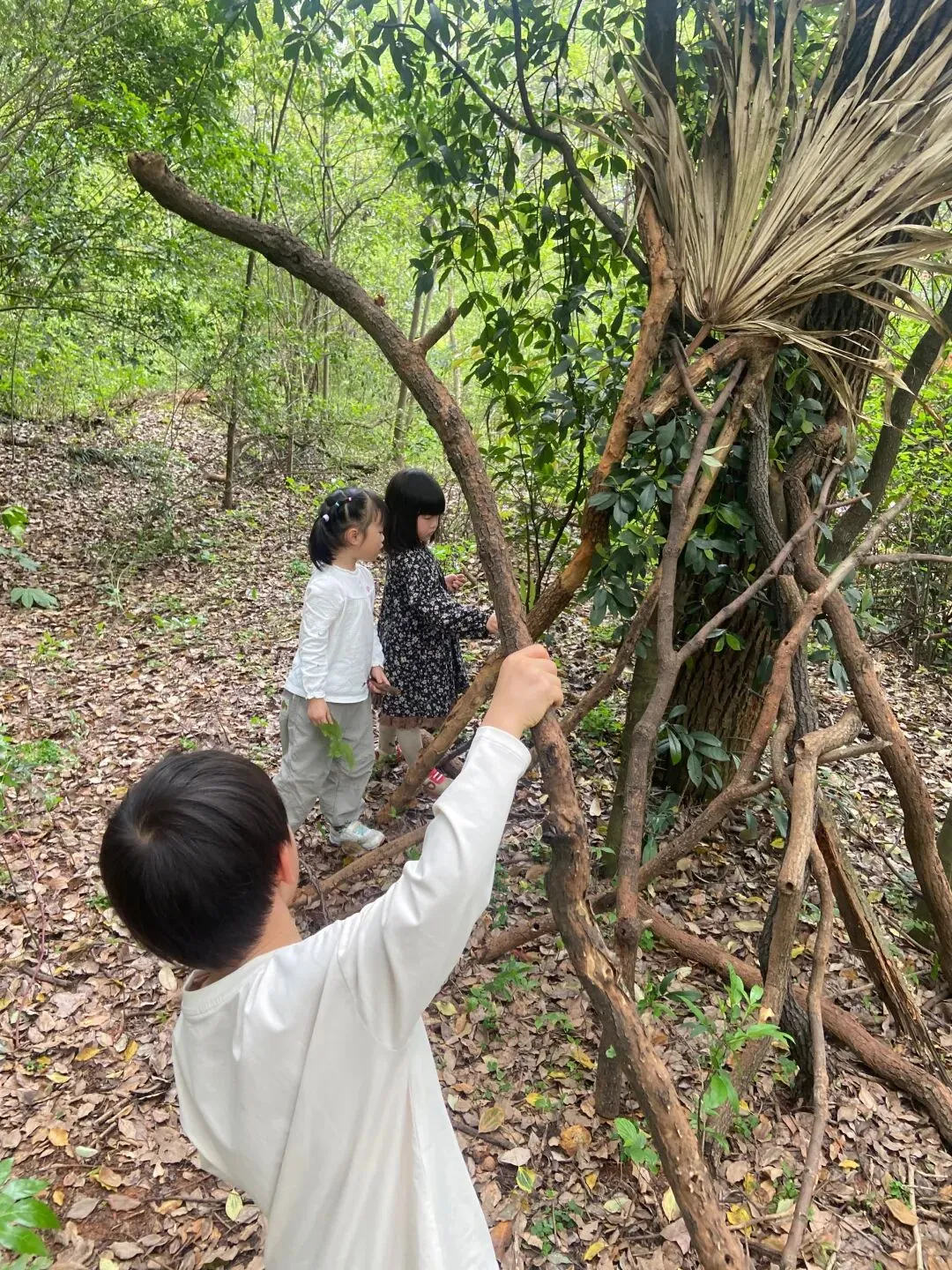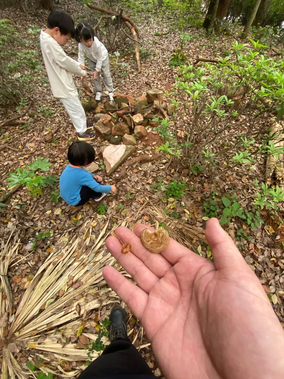 今天孩子们又搭建了一个小木屋,而且在搬运的木材的过程中,又发现了各种各样的蘑菇木耳,像开盲盒一样,动不动就有惊喜,是大自然带来的惊喜;