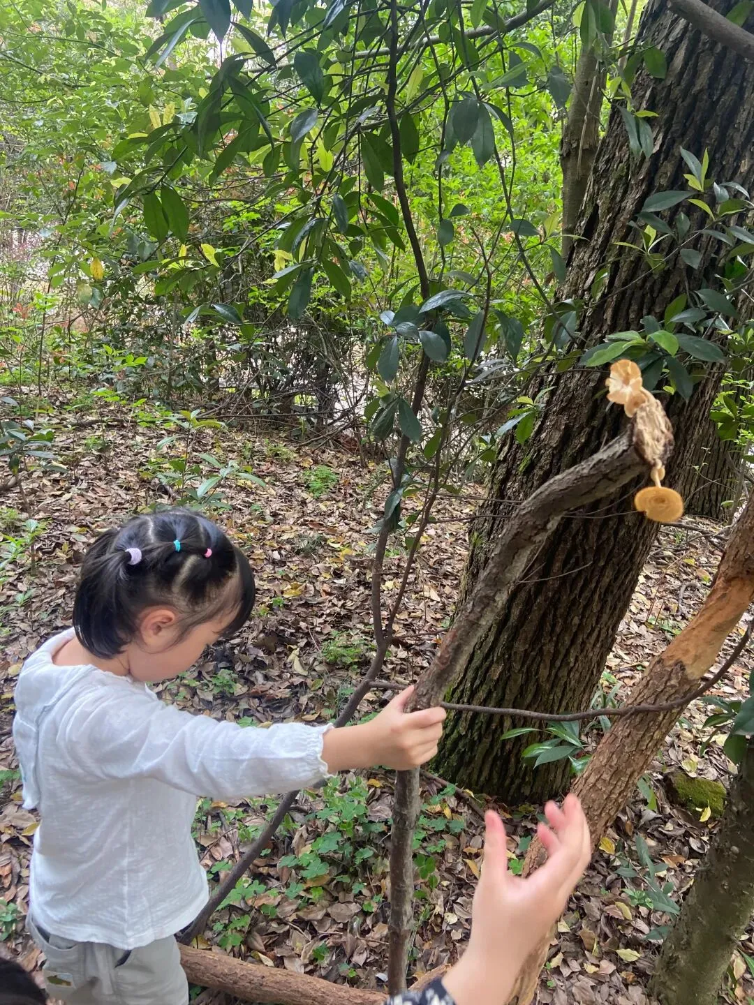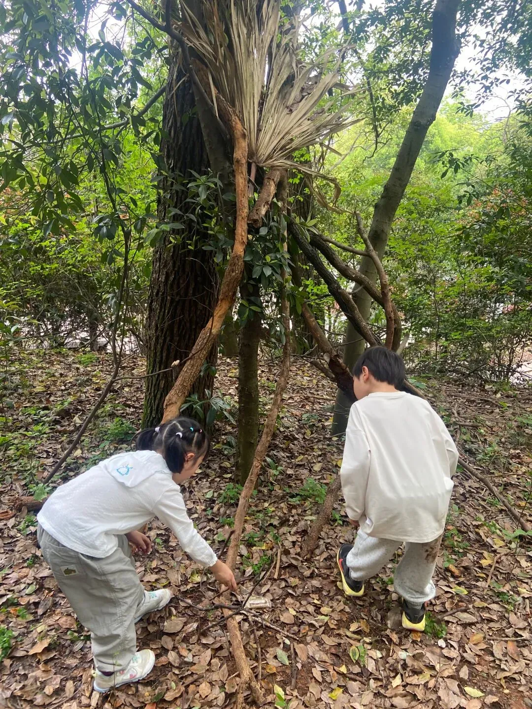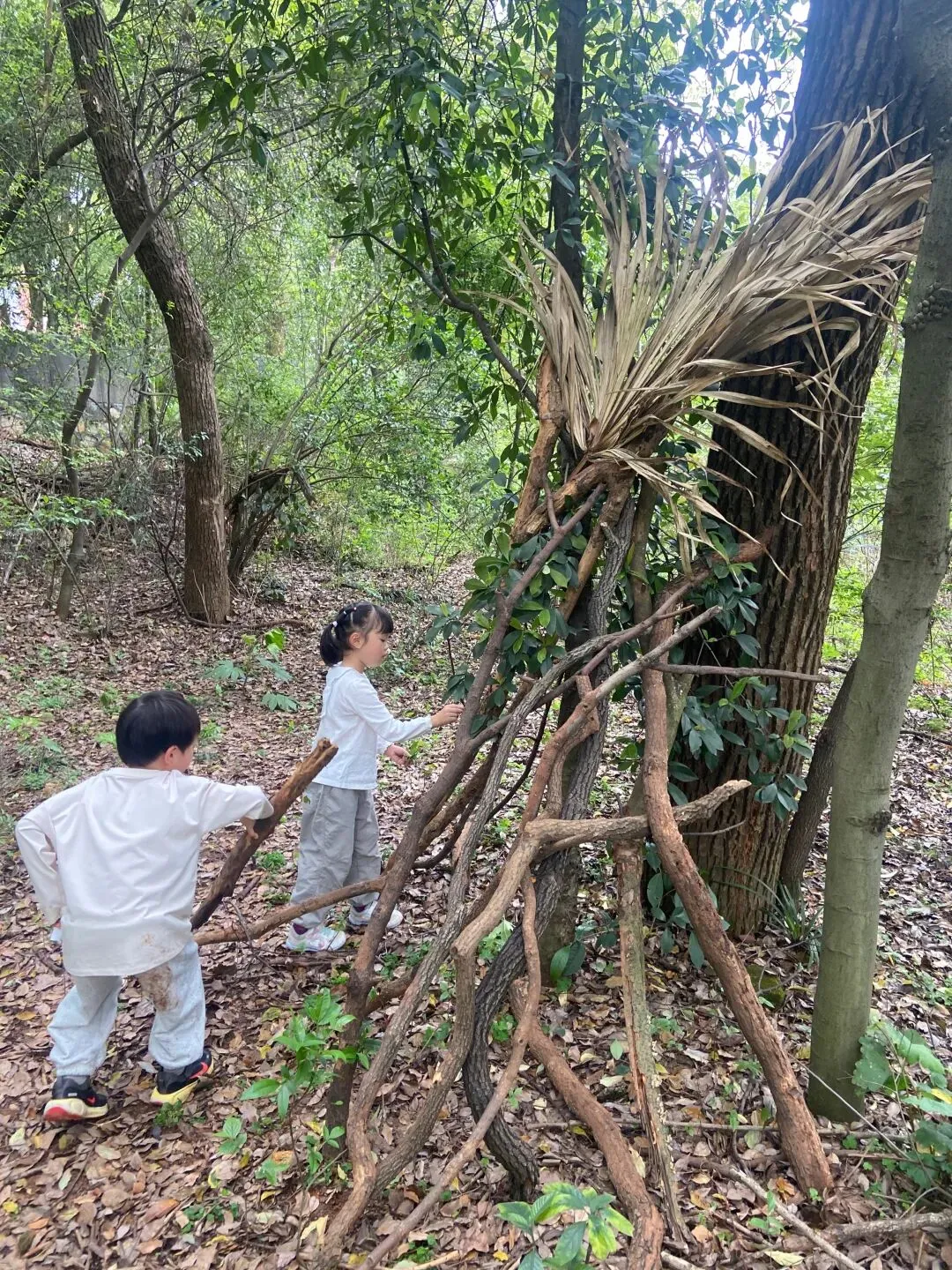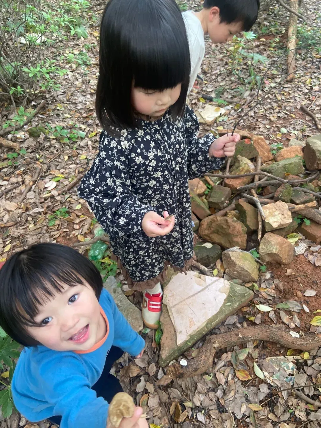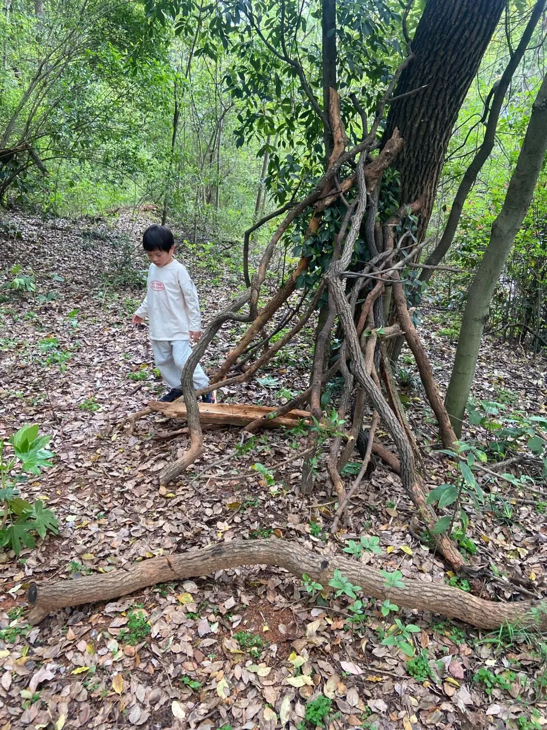 今天孩子们又搭建了一个小木屋,而且在搬运的木材的过程中,又发现了各种各样的蘑菇木耳,像开盲盒一样,动不动就有惊喜,是大自然带来的惊喜;