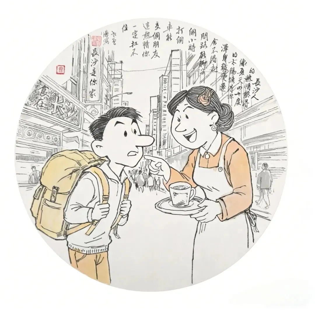 05/ 长沙人的热情,热得像夏天四十度的太阳——烤得你浑身发烫,还舍不得走。问路能聊半小时,打个车能交个朋友,这热情你一定扛不住。