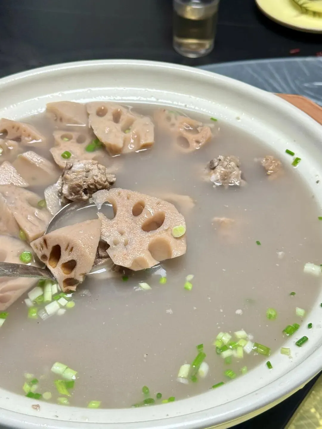 老板娘推荐的菜,说是他们的汤有种特殊的味道。在评委们尝试一圈之后,只感觉到有浓厚的胡椒味和来得有些莫名其妙的桂皮味,但是藕味、骨头味和肉味都不明显,汤味寡淡到不像炖煮出来的,更像现汆的,这个推荐让我们觉得很无理,不能推荐。
