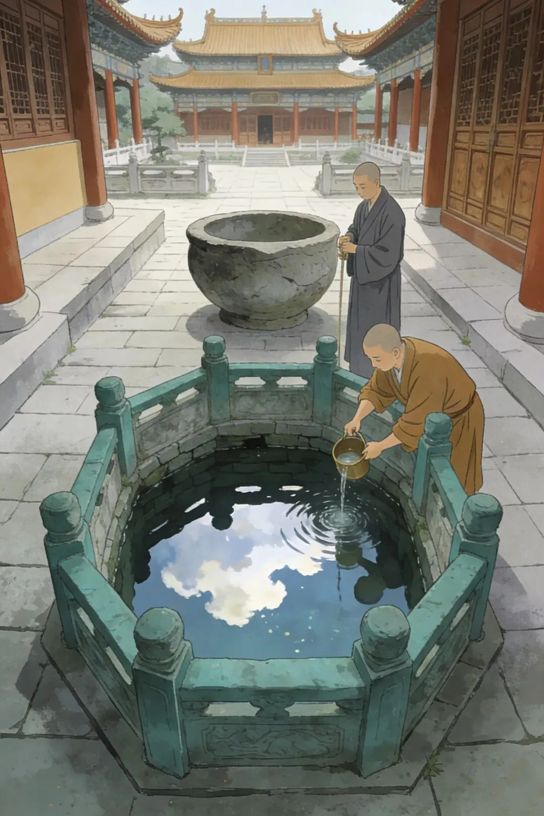 最有底蕴的当属寺内的龙泉井,它并非网传的奇幻传说,而是真实存在的千年古泉,也是“开福十六景”之一,与鸳鸯井同属一脉,寺内放生池、碧浪湖等景致的水源,皆来自这里。据清乾隆《开福紫微堂莲池谱》记载,这口井位于大雄宝殿后的天井中,井水清冽甘甜,冬温夏凉,井旁曾设有大石盆,方便僧众洗漱饮用,是古寺千年以来的“生命之泉”。相传它是当年马希范修建会春园、舍园建寺时,特意开凿供养僧众的“法泉”,千年间始终未曾干涸,老长沙人代代相传,喝一口龙泉井水,能清润身心、寄托平安心愿,这份说法也成为刻在当地人记忆里的本土情怀。