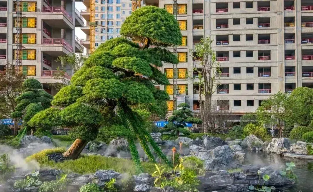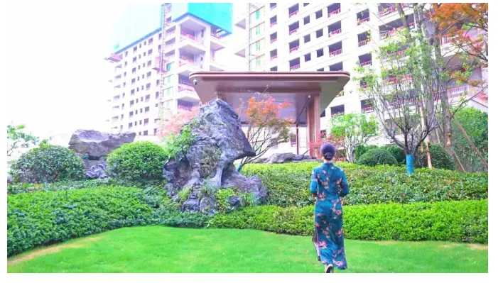 重达6吨的皇室贡石英德石嶙峋矗立,其后如霞似火的红枫、羽毛枫随风摇曳,振翅欲飞。英德石的刚健与枫的柔美在此相生相融,寓意着居住在此的业主“事业如磐石,未来红红火火”。