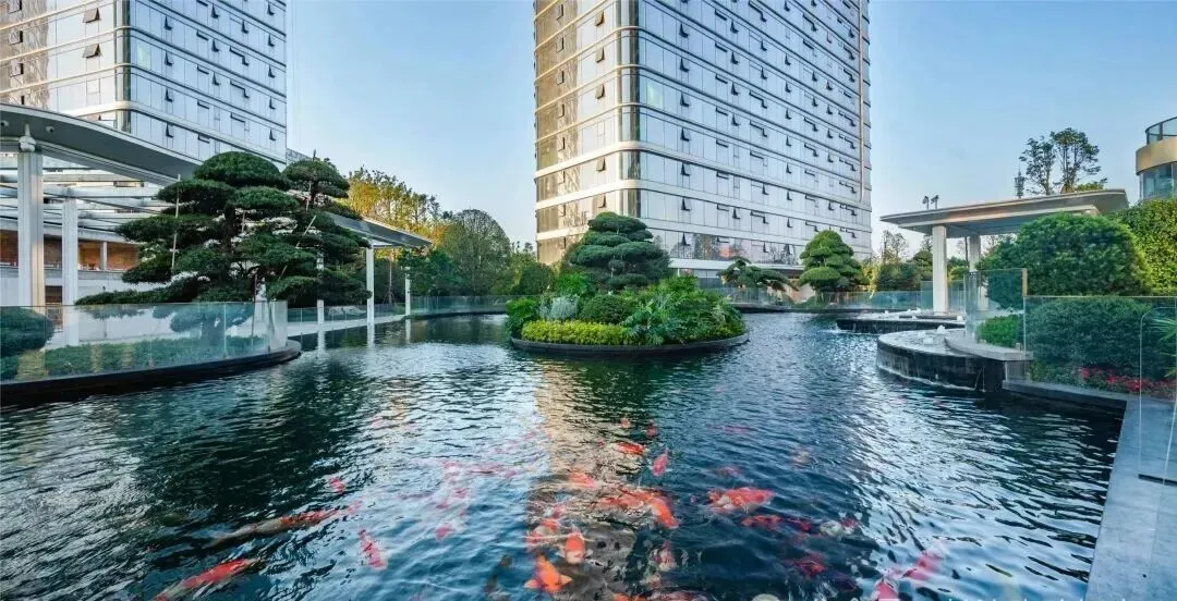 匠造约600㎡湖湘梦幻锦鲤池,采用皇室贡品英德石进行假山造景,数百尾瑰宝级锦鲤,打造专属润和大泽湖业主的生活逸境。