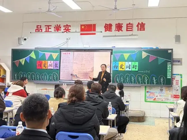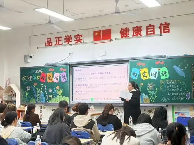 语文、数学科任课老师依次登场,针对学科特点与学习要求,向家长们做了专业解读。语文老师重点强调了阅读习惯、识字积累对孩子语文素养的重要性,分享了低年级语文学习的方法与重点;数学老师则围绕计算能力、思维培养等方面,给出了针对性的辅导建议。多学科的联动分享,让家长们全面了解孩子的学习情况,掌握科学的辅导方法,实现家校同频、精准共育。
