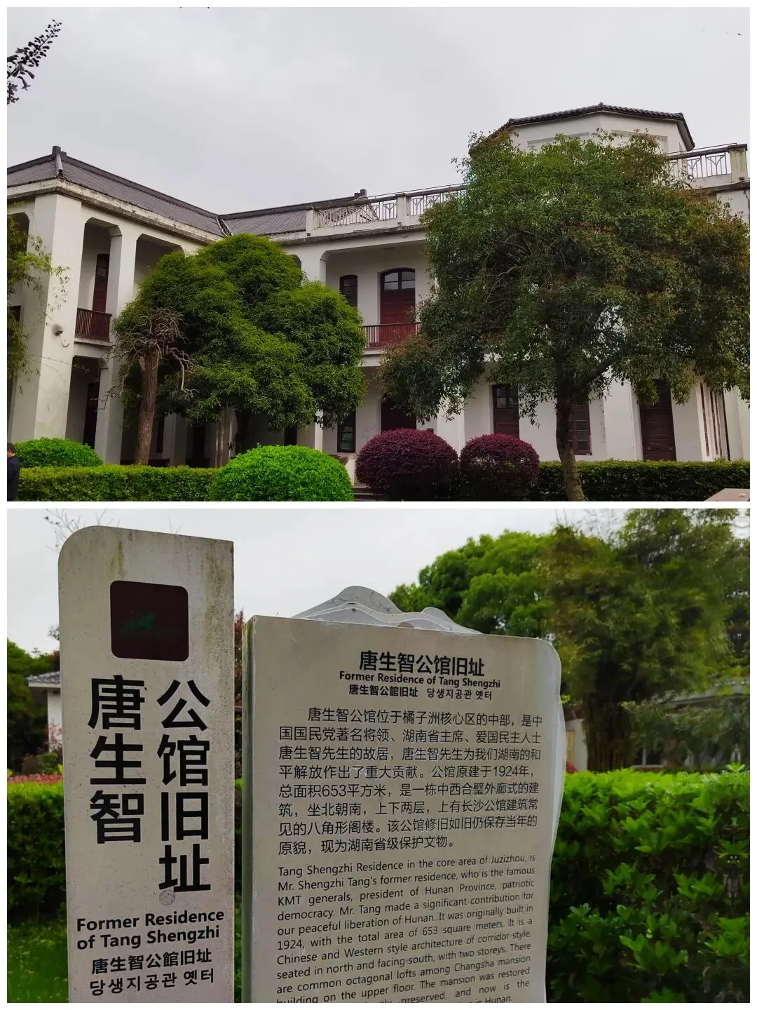 唐生智公馆旧址,位于橘子洲的中部,是中国国民党著名将领、湖南省主席、爱国民主人士唐生智先生的故居。