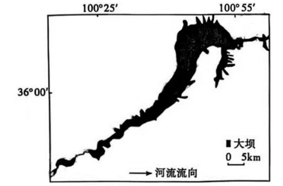 龙羊峡水库是黄河上游大型水利枢纽,水库内部存在明显环境梯度:库尾(距大坝>30千米)是自然河道与库区交汇处,偏向于河流性质;库首(距大坝<10千米)靠近龙羊峡镇,偏向于湖泊性质;库中(距大坝10~30千米)处于过渡区域。这种环境梯度会对水库内的鱼类分布造成影响。近年来,因人为排放废水、鱼类放生等,水库内土著鱼类减少、外来鱼类增加。下图为龙羊峡水库示意图。据此完成14~16题。