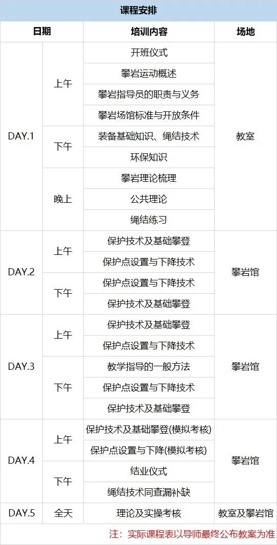 3. 参加培训学员需仔细阅读并签署初级攀岩培训声明和培训协议;