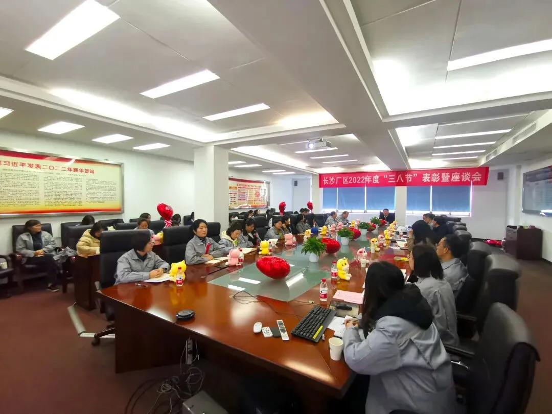 3月7日上午,福田汽车长沙厂区召开2022年“三八节”表彰暨座谈会。厂区领导、各分工会主席以及三八先进集体、先进个人、女工代表共计50余人参加。