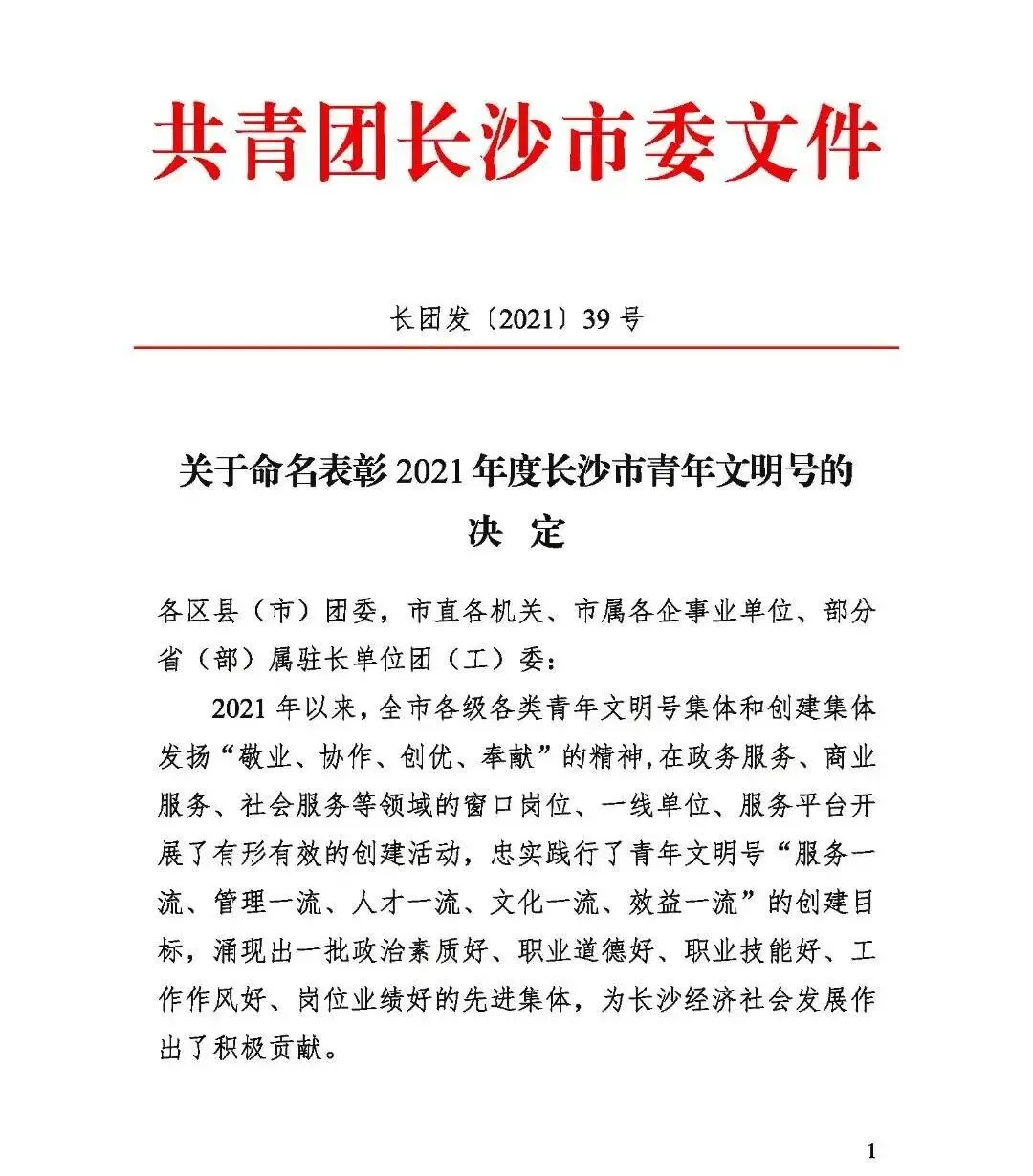 为表彰先进、树立典型,近日,共青团长沙市委印发《关于命名表彰2021年度长沙市青年文明号的决定》(长团发〔2021〕39号),北汽福田汽车股份有限公司长沙普罗科环境装备分公司服务管理部荣获“青年文明号”称号。